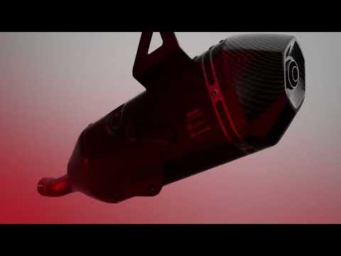 Sowohl der Endschalldämpfer als auch der Verbindungskrümmer ist aus rostfreiem V4A Edelstahl gefertigt. Die schwarz beschichtete Außenhülle ist mit einem doppelten Aufdruck versehen - ein Designelement, das die Haltbarkeit durch zusätzliche Festigkeit der Oberfläche erhöht. Das lasergravierte Akrapovic-Logo auf der Hülle sorgt für einen markanten Abschluss. Der Enddämpfer kommt mit dB-Killer und Carbon-Endkappe. Der Schalldämpfer erfüllt die Euro5+ Norm, hat eine EC/ECE-Typgenehmigung und darf somit legal im Straßenverkehr gefahren werden. Im Inneren befindet sich ein Katalysator. Eine neue Lösung positioniert eine zweite Lambdasonde hinter dem Katalysator.
